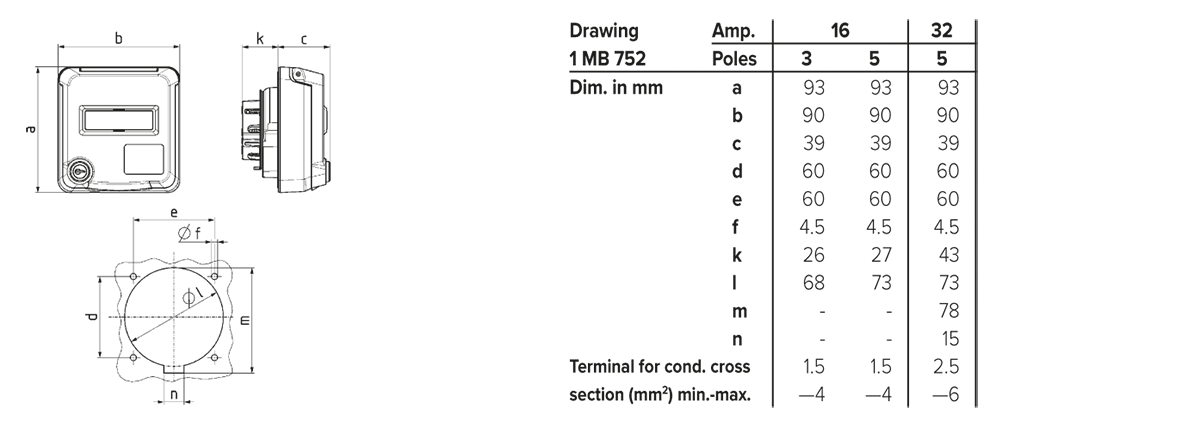 single, matching all Cepex flush mounted and panel mounted 16 A and 32 A receptacles, for the installation of single appliances and for vertical combination of any number of receptacles