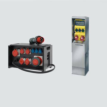 Always the right solution: wall mounted receptacle combinations in your hall, you'll find a variety of flexibly configurable power distributors of our AMAXX and EverGUM product families, as well as distributor cabinets made of rustproof stainless steel.